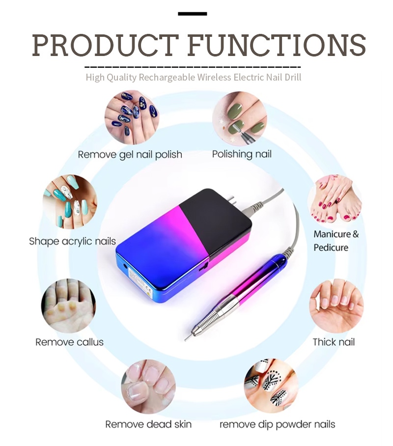 This 30,000 rpm electric nail drill has 2 colors to choose from, black/white/gray/blue/red/pink/orange, colorful colors.