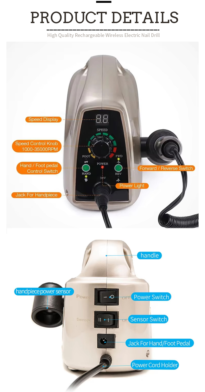 Nail Drill Electric Not Easy To Damage Handpiece 65w 35000rpm