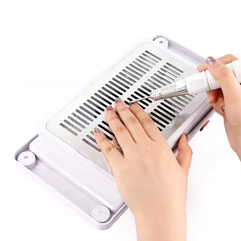 Yes. The Desktop Embedded Nail Dust Collector is specifically engineered for no dust leakage. The 45W strong suction power, combined with effective sealing around the intake area, ensures that dust particles are captured at the source rather than escaping back into the workspace. During heavy acrylic filing, the unit maintains consistent suction performance, keeping countertops clean and preventing dust from becoming airborne. For technicians who perform multiple acrylic services daily, this reliable dust capture significantly reduces cumulative dust exposure.
