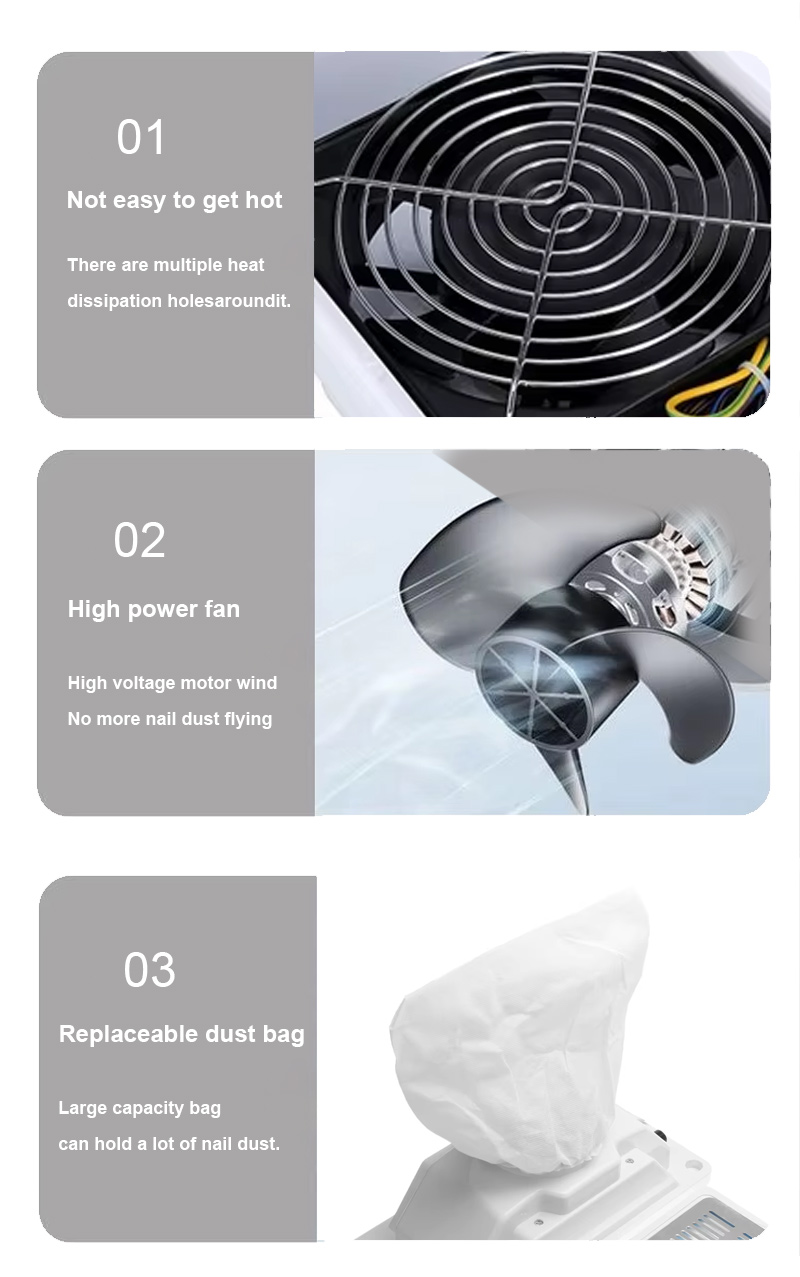 Products strong adsorption of nail debris does not leak dust, keep the countertop clean and tidy, fast vacuuming does not leak dust high power more efficient.