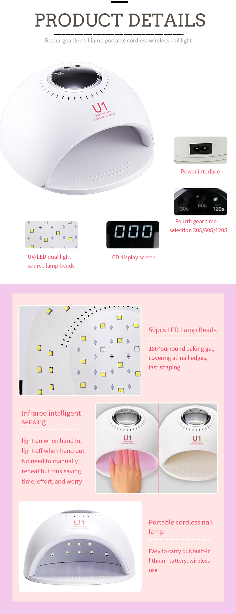 The product ensures even glue drying without shrinkage. Its dual light sources provide gentle heating to prevent hand discoloration and eye strain, suitable for both hands and feet, delivering remarkably fast drying results.