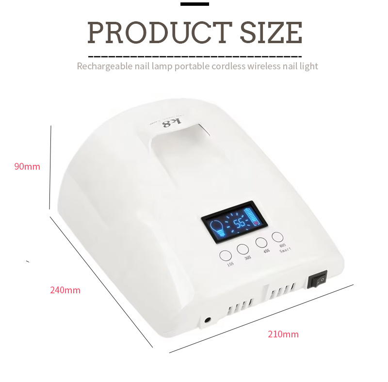 The dimensions of the large-capacity nail drying lamp with handle are 205 mm in length, 220 mm in width and 104mm in height, with a large capacity and the ability to use both hands and feet, which is very convenient.