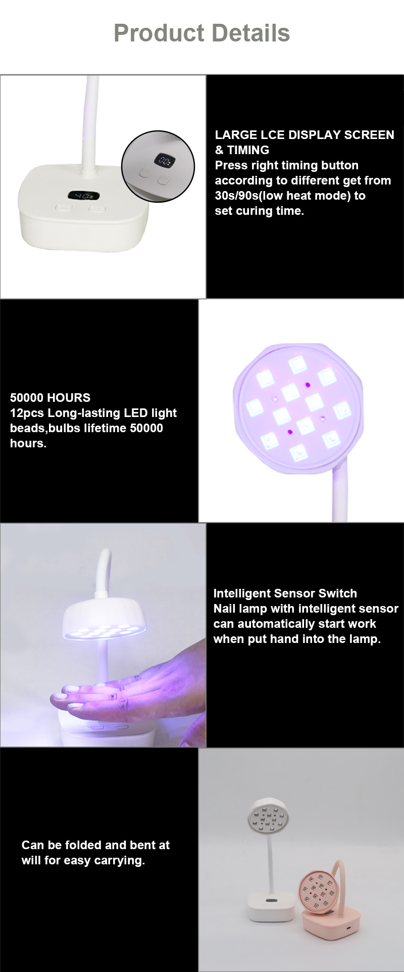 The product ensures even glue drying without shrinkage. Its dual light sources provide gentle heating to prevent hand discoloration and eye strain, suitable for both hands and feet, delivering remarkably fast drying results.