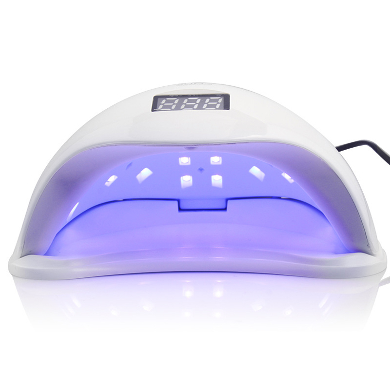 The nail dryer with removable base cures most standard gel polish formulations—including base coats, color gels, and top coats—in approximately 10 seconds. The 48-watt power output and high-quality LED bulbs provide fast, even curing across all five fingers. For thicker applications such as builder gels or very dark pigmented colors, you may want to use the memory timer settings to extend the curing cycle slightly. The lamp's consistent light distribution ensures complete polymerization without tacky layers or uneven spots.