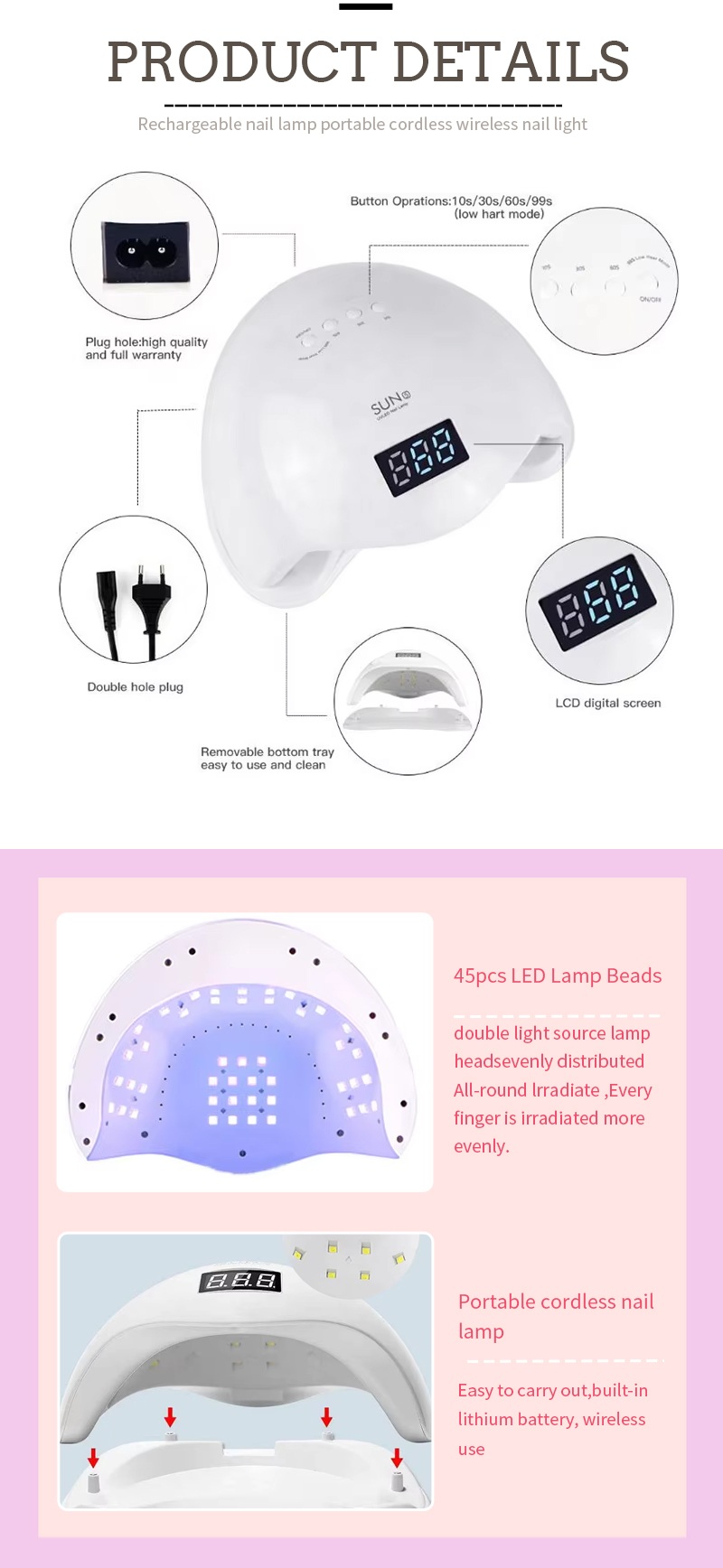 한국어For nail professionals who prioritize cleanliness without sacrificing performance, equipment design directly impacts both service quality and client safety. The nail dryer with removable base from Ruina Optoelectronic introduces a practical innovation—a detachable base plate that simplifies sanitation while offering versatile use for both hand and foot services. This 48W rechargeable cordless lamp combines rapid 10-second curing, motion-activated operation, and a long-lasting 15600mAh battery, making it an essential tool for hygiene-focused salons and mobile technicians.