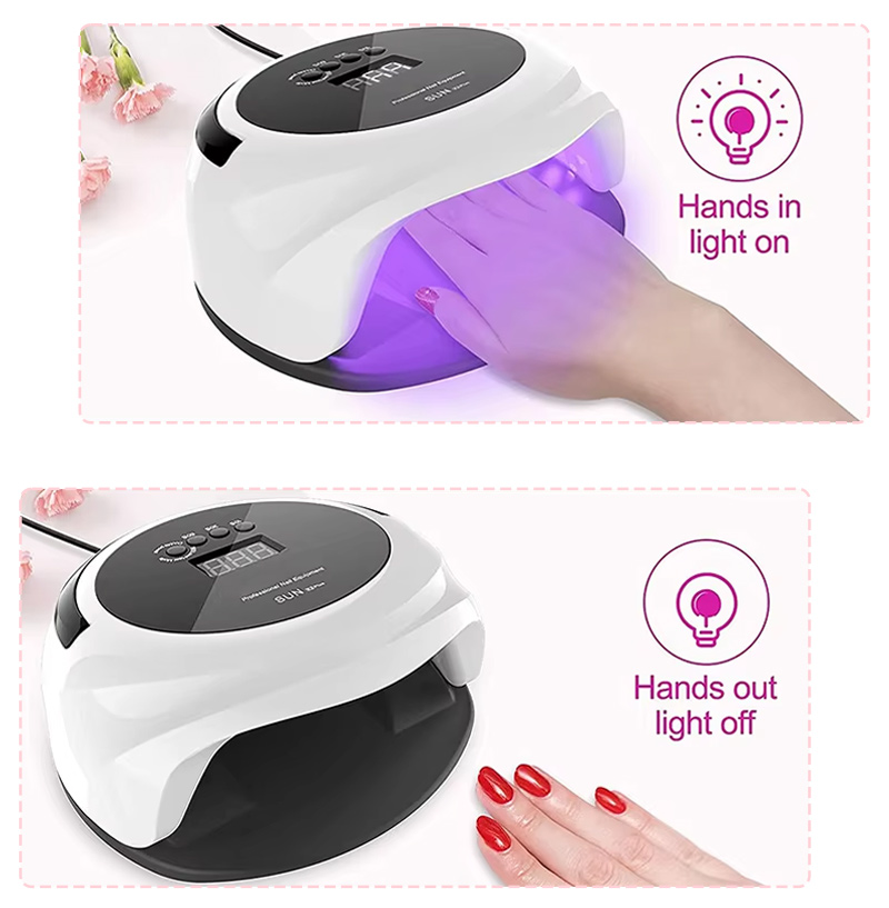 The product ensures even glue drying without shrinkage. Its dual light sources provide gentle heating to prevent hand discoloration and eye strain, suitable for both hands and feet, delivering remarkably fast drying results.