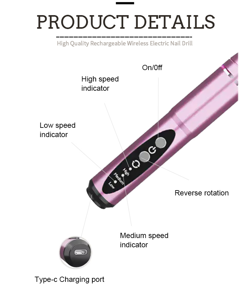 Portable Nail Drill Set Electric With Powerful Motor 65w 35000rpm