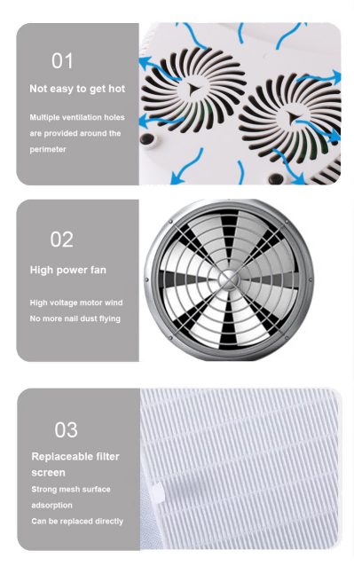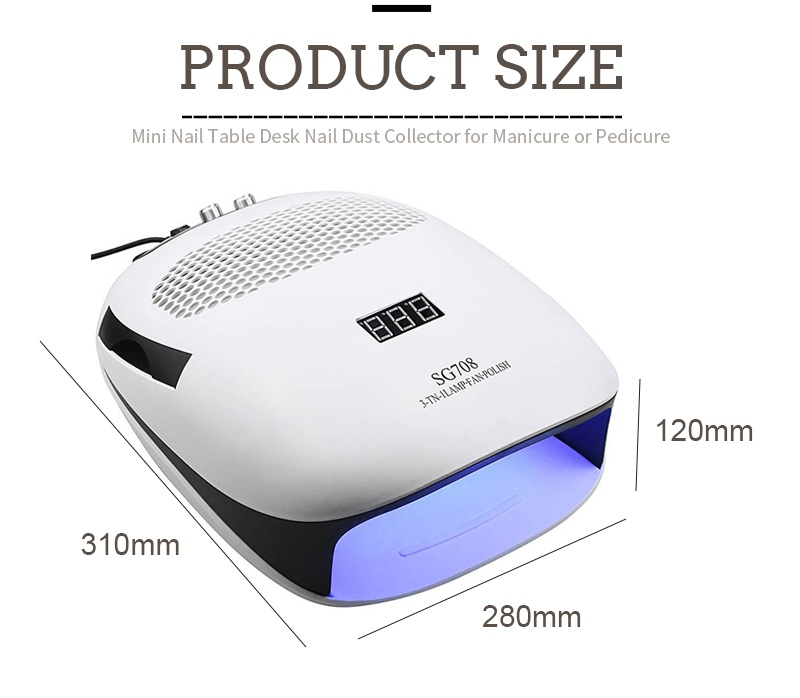 The dimensions of the triple-combination hand-held nail lamp with pillow are310 mm in length, 280 mm in width and 120mm in height, with a large capacity and the ability to use both hands and feet, which is very convenient.